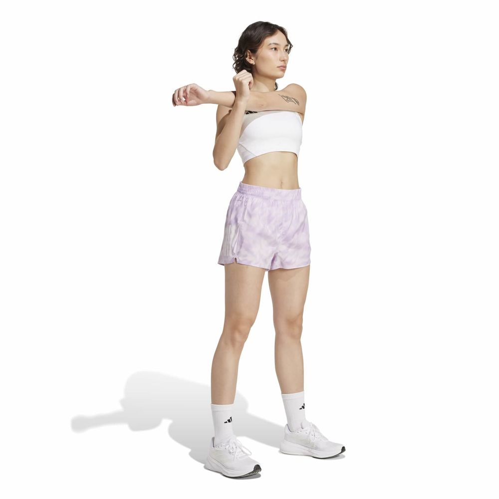 Discover the freedom of running with the adidas OTR AOP 4" women's running shorts. Made from recycled materials and featuring CLIMACOOL technology, it allows you to stay dry and comfortable during your runs. Reflective details, an elastic waistband and a zip pocket for your phone are essential for every runner.